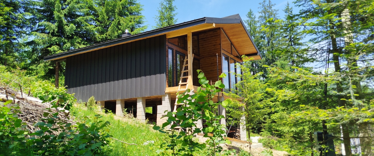 Бетон, арматура, залізо, дерево, мінеральна вата (утеплювач), блок для стовпчиків, паро-гідро ізоляція, клік фальц (фасад, покрівля), металопластикові віконні та дверні конструкції.